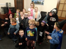Akce Halloween ze cvičení středa 6.11., počet účastníků – 30 dětí ,rodiče a babičky a sourozenci, průvod masek, plnění úkolů a závěrečné posezení ve Verganu.